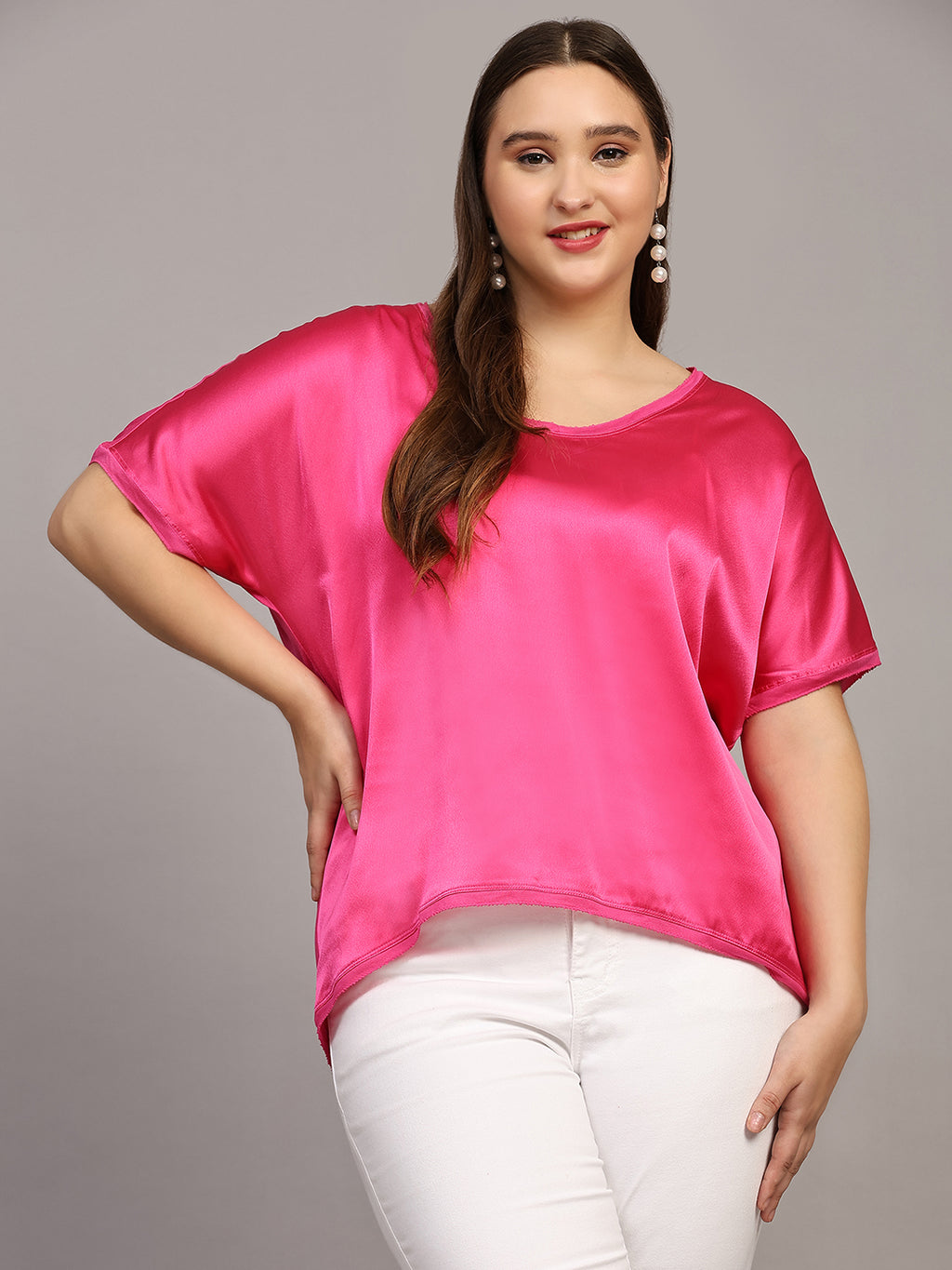 Make a statement on those fashionable evenings by wearing this Pink satin number. It features a regular fit and has a simple U-neckline. Perfect for dinners and parties, this top is very easy to style. Sport your hair up for th...