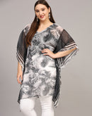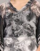 Say hi to this sexy and snazzy kaftan Top. Made out of flowy georgette, this see-through uniquely printed kaftan is made for beaches and all your pool parties. The cut is flawless and will flaunt your curves to make you feel your best. Pair it with strappy sandals for a complete look.