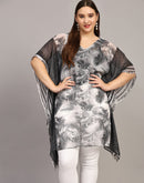 Black & White Tropical Print Kaftan Top