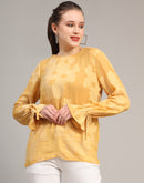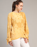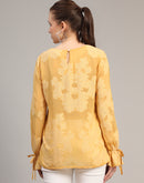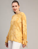 Mustard Self Design Casual Jacquard Top