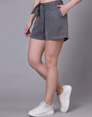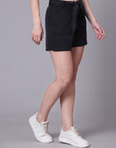 Navy Blue Regular Fit High-Rise Solid Shorts