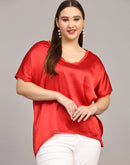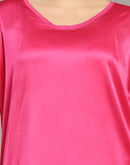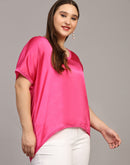 Make a statement on those fashionable evenings by wearing this Pink satin number. It features a regular fit and has a simple U-neckline. Perfect for dinners and parties, this top is very easy to style. Sport your hair up for this one and style the top with anything that comes to your mind, skirts or trousers
