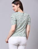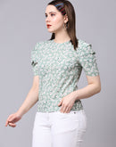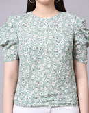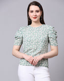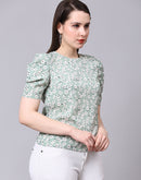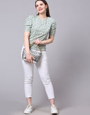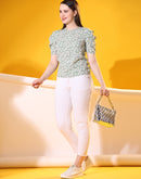 Step out in this floral printed top and you will be talk of the town.This top-notch top is fabricated on a crepe fabric. Covered throughout in pretty little white flowers,this top is all you need for a drop-dead gorgeous look.This style worthy top features round neck and cowl sleeves.