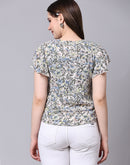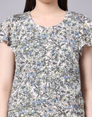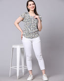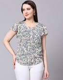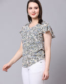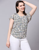 Your summer basics just got a whole lot fancier with this milky rather greyish, gorgeous printed top. Crafted from georgette, pintucks at front yokes,this ruffled top will keep you cool on a hot sunny day yet still get you all the compliments.