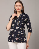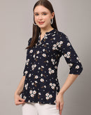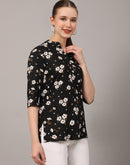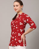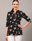 Are you ready to bring your inner goddess outside? This chic floral print tunic is here to stay for literally every occasion already. With three fourth sleeves, a sit-down collar and a length that gives your body a sleek look.