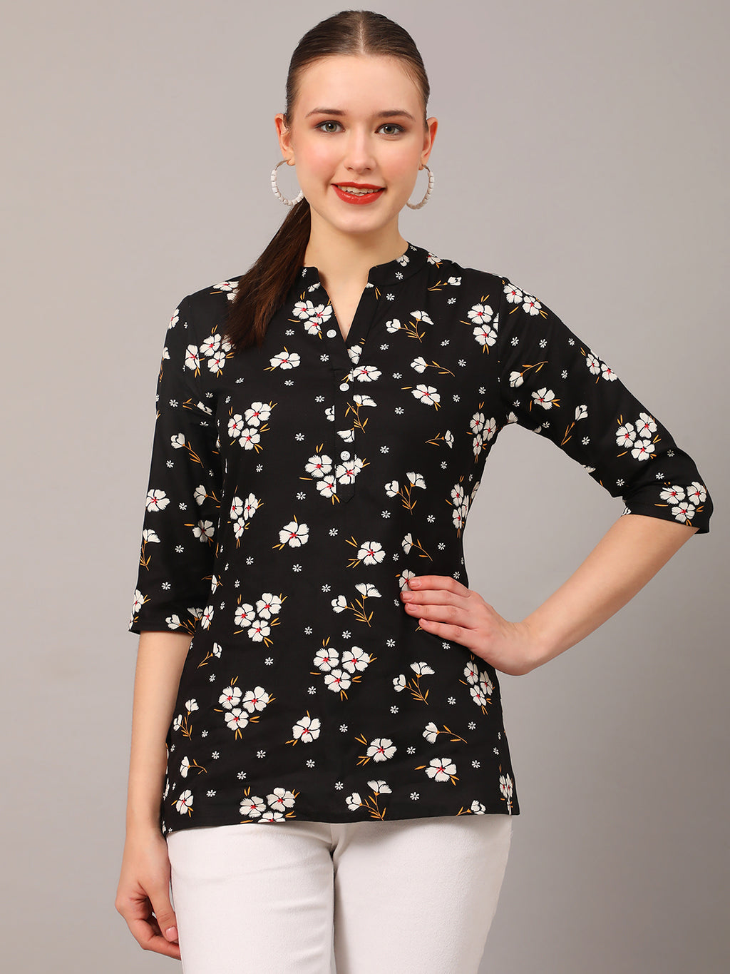 Are you ready to bring your inner goddess outside? This chic floral print tunic is here to stay for literally every occasion already. With three fourth sleeves, a sit-down collar and a length that gives your body a sleek look....