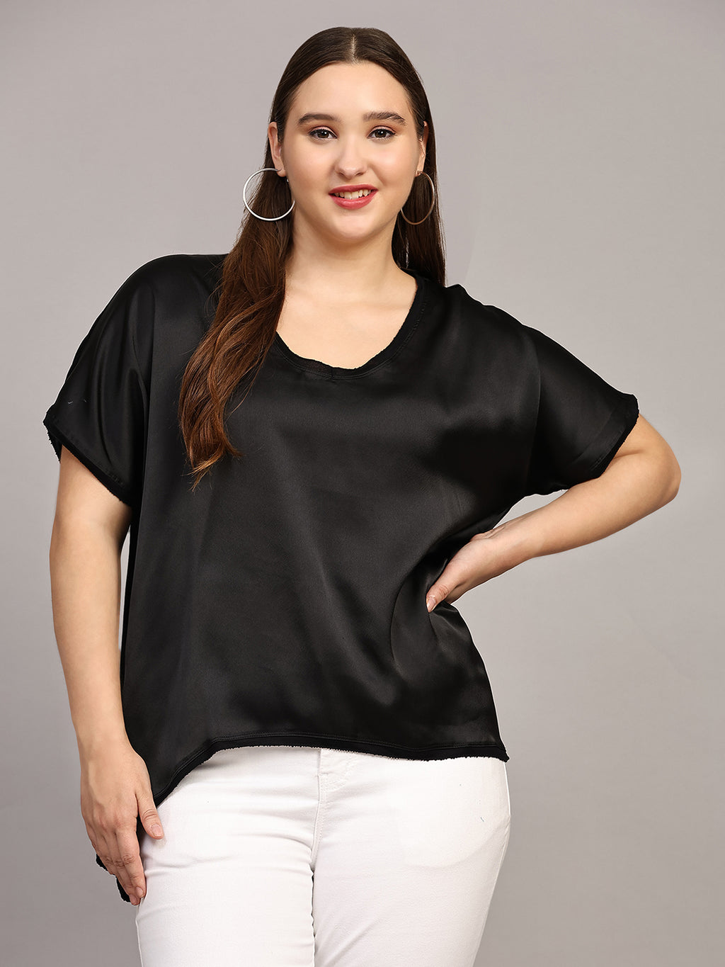 Make a statement on those fashionable evenings by wearing this Black satin number. It features a regular fit and has a simple U-neckline. Perfect for dinners and parties, this top is very easy to style. Sport your hair up for t...