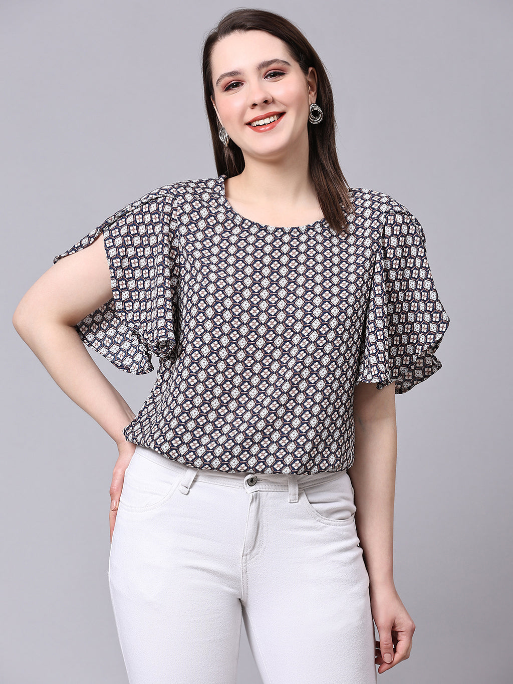 In a blue shade this petal-covered top is a charm! Made from georgette fabric and boasting a glamorous round neckline, with waterfall sleeves this gorgeous yet elegant top is vintage-inspired fire.