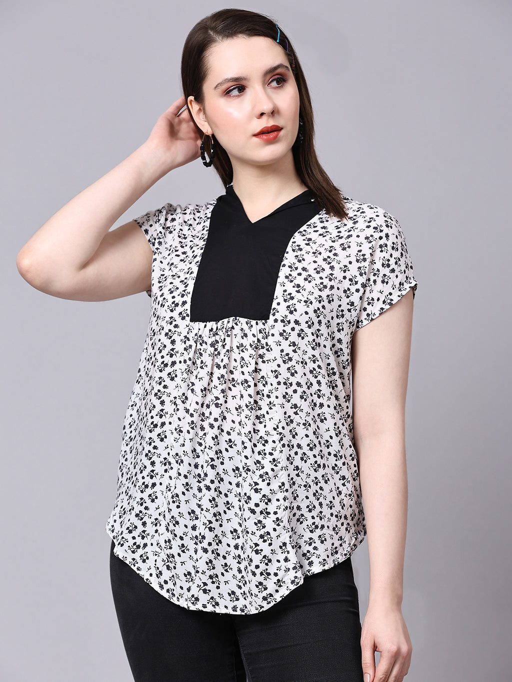 What we bring to you is a perfect mix of Royal Kaftan from the past with a trendy 21st century touch.The kaftan top is fabricated on insert material typewith overall floral print.This overall white top has a bold touch of black...