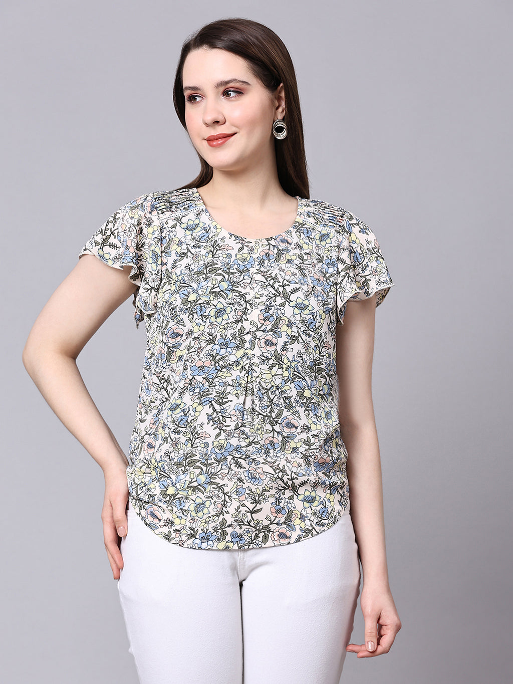 Your summer basics just got a whole lot fancier with this milky rather greyish, gorgeous printed top. Crafted from georgette, pintucks at front yokes,this ruffled top will keep you cool on a hot sunny day yet still get you all...