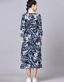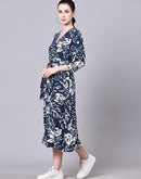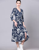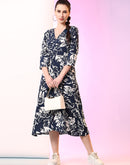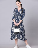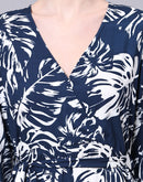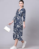 Give a twist to your summer look with this gorgeous wrap dress. Made from a comfortable Rayon fabric, this breezy and bright piece of clothing is meant to build your fashion quotient this summer. Designed to fit all body types, this blue number has a belt along the waist which allows you to shape it differently. A bold tropical print and a front slit add to the glam quotient.