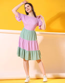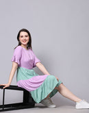 Pomegal Purple & Green Fit and Flare Solid Flared Dress