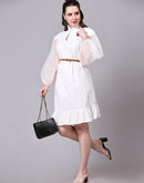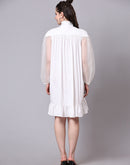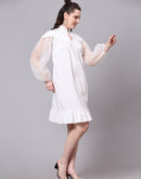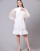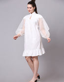 Invest in carefree silhouettes that fall gracefully on your body like this dress from our newest collection. Constructed with a soft superior cotton fabric, this flouncy sheer sleeves dress comes with a style quotient featuring puffed sleeves and a flowy silhouette.