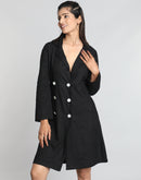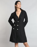 Are you ready to kill with your look? Now be absolutely ravishing in this black blazer dress. Crafted to perfection, it is made with the best quality viscose slub fabric that has a rich feel to it and showcases a sleek finish. It features a unique button detailing that is sure to shine the spotlight on you. Style it with a pair of block heels, hoops earrings, and a watch for a classy and chic look.