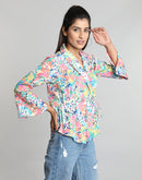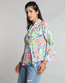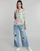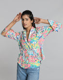 Renew your casual staples with this amazing top. Our skin needs the right rhythm with our clothing, so by choosing this multicolor floral printed top you will have harmony with your skin. It is very lightweight and comes with a blazer collar and waist drawstring to clinch the waist as per your own choice.