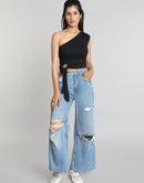 It's time to add a soothing Crop top to your summer essentials that will quickly become your go-to this season. Made from super soft viscose, this one shoulder Crop top has a tie up at waist and super stretchable fabric to create an effortless vibe . On-demand, on-trend, and on-social, these basics can elevate any outfit.