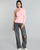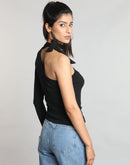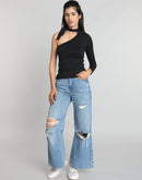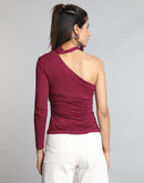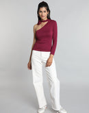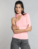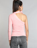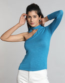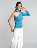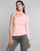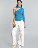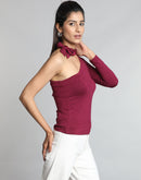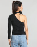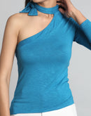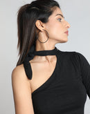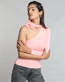 Not your basic top! The stylish one shoulder knitted top has a unique high neck tie up to it that gives it an effortless vibe. Cooling and super comfortable, this jersey elevates your fashion game quite seamlessly and contours your body very well.With a length that cuts just right, the construction of this fitted top exudes luxury and comfort at the same time.