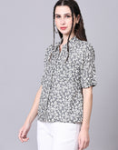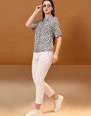 Grey Boxy Casual Floral Shirt