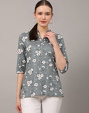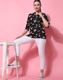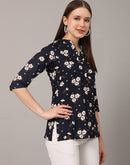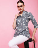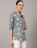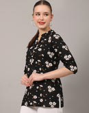 Are you ready to bring your inner goddess outside? This chic floral print tunic is here to stay for literally every occasion already. With three fourth sleeves, a sit-down collar and a length that gives your body a sleek look.