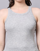 Not your basic top! The basic ribbed grey tank has a unique texture to it that gives it an effortless vibe. Cooling and super comfortable, this jersey elevates your fashion game quite seamlessly and contours your body very well.With a length that cuts just right, the construction of this tank exudes luxury and comfort at the same time.