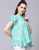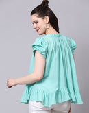 It's time for some summertime madness! Allow your inner diva to try out the newest trends with our latest tops. Flared hem and pleated ruffles high low design add character and an untouched elegance along with a stylish touch to your everyday look.