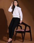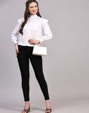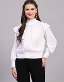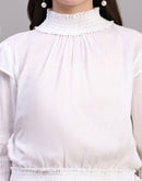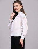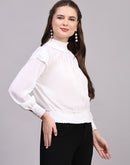 Look your gorgeous best as you head out wearing this beautiful white solid pleated top. Crafted using the finest fabrics and greatest techniques, this top makes up for the utmost comfort.