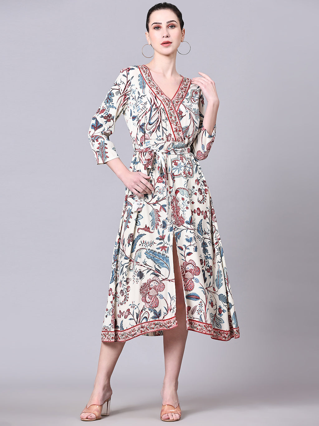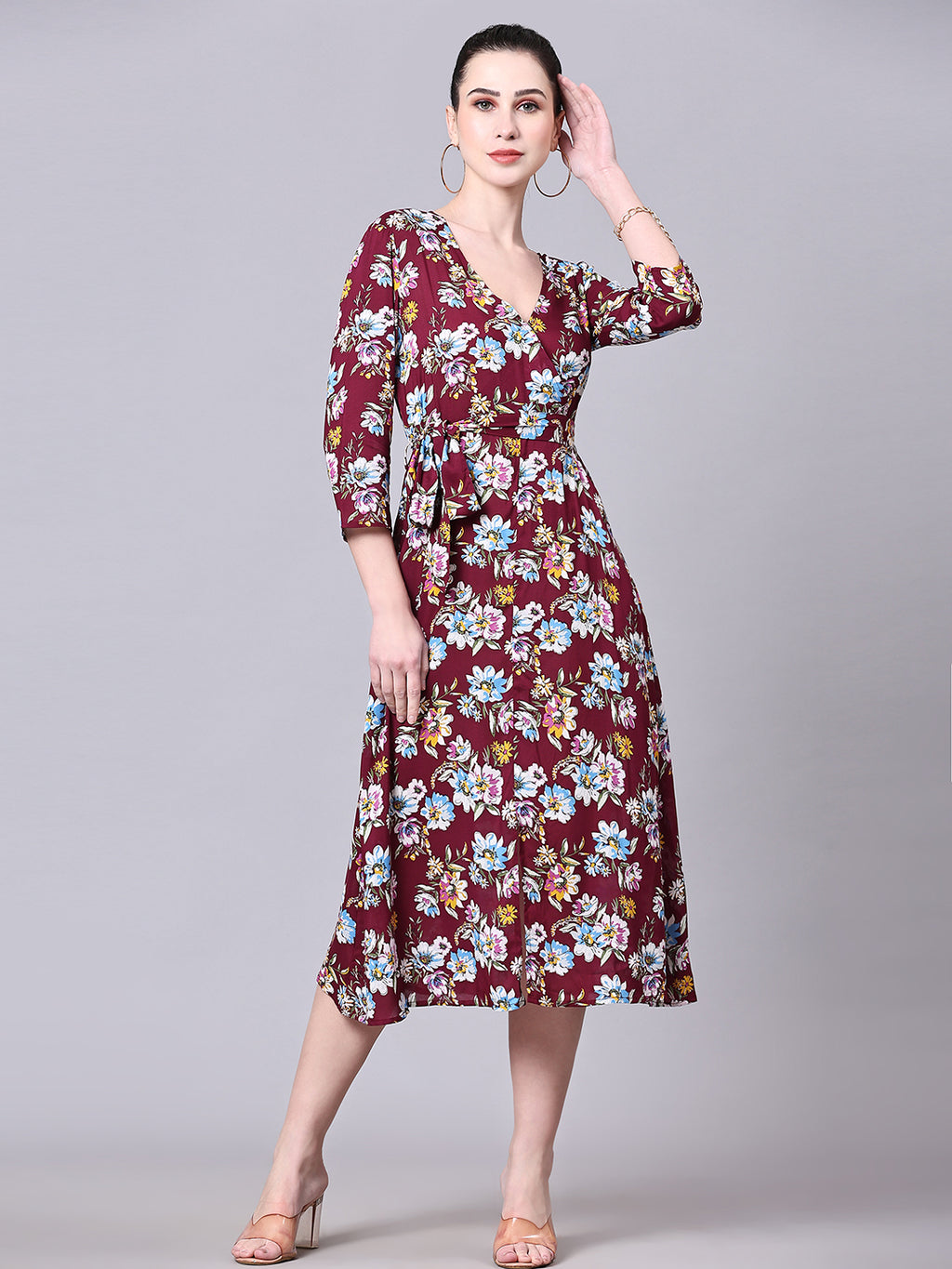 Make a stunning style statement with this chic dress. Crafted in a breathable fabric, this dress features an exquisite design with a sweetheart-Neck and makes for an effortless pick for your brunch date or day outings. The free-flowing silhouette topped with the bold pink floral print and voluminous sleeves makes it extremely versatile.
